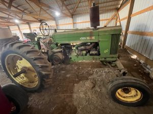 4- John Deere tractors, flatbed trailers, machinery, shop tools and equipment